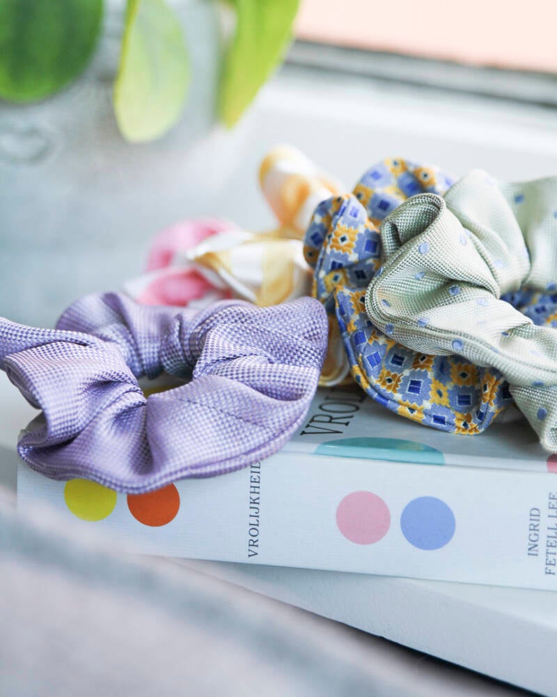 Ook maakt ze producten op aanvraag. ‘Laatst heb ik een aantal scrunchies gemaakt op aanvraag, van oude stropdassen van een opa van iemand die inmiddels was overleden. Ik vind het echt heel erg mooi dat ik op deze manier met mijn werk iets kan betekenen voor iemand anders.’