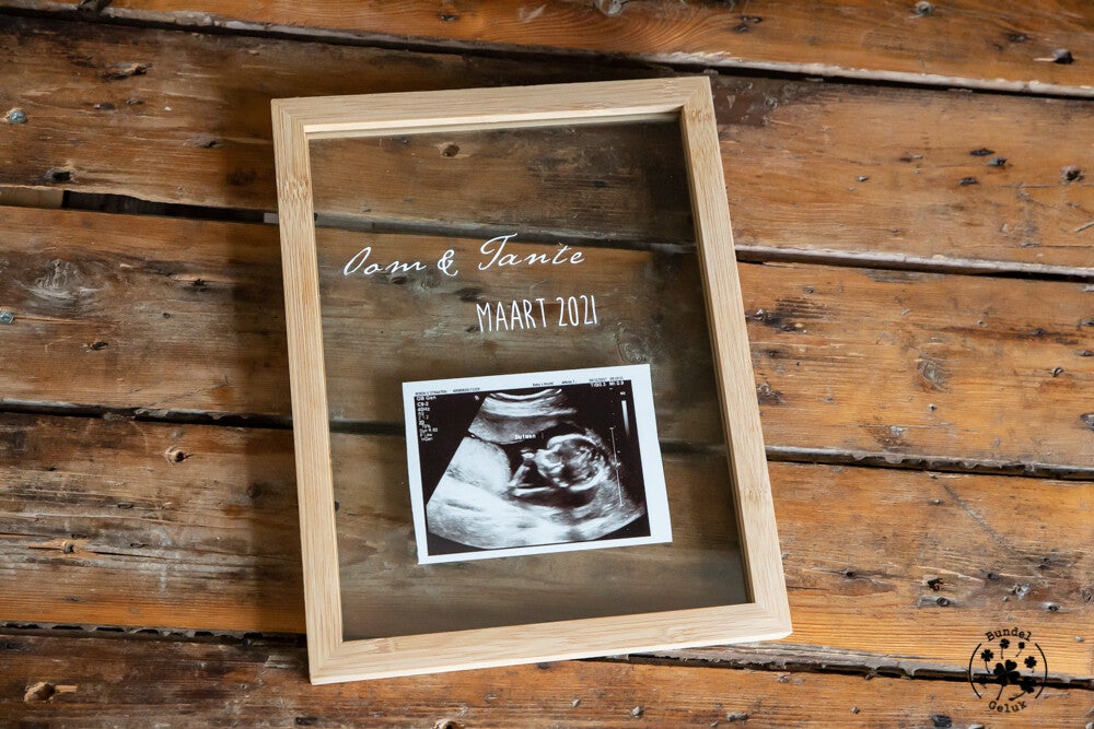 Als je graag je echo foto erbij doet dan hoor ik graag of de tekst aan de bovenkant of onderkant geplaats dient te worden.