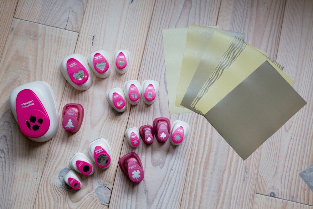 BundelGeluk heeft ook (zelfklevende) achtergrondjes, zo kun je in allerlei kleuren stickertjes maken met je pons.