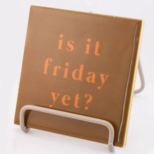 Bij VED vind je een collectie keramieke tegeltjes met leuke teksten.