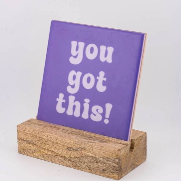 Bij VED vind je een collectie keramieke tegeltjes met leuke teksten.